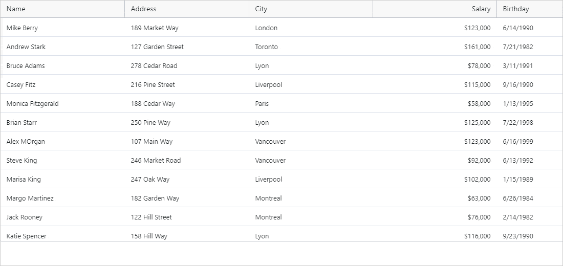 이 예에서는 다음을 포함하여 데이터 그리드의 주요 기능을 보여줍니다.